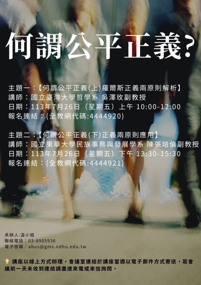 原住民族相關學習內容諮詢宣導【何謂公平正義】線上講座,開放報名囉! 最新消息By twelveyears2024-07-10即日起可以至全國教師在職進修網站上報名,相關資訊參考官網最新消息。 https://ieiw.k12ea.go…