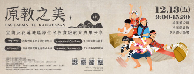【活動報名即日起至113.11.29止】Pas’uapain tu kainauazan原教之美─113年宜蘭及花蓮地區原住民族實驗教育成果分享 最新消息By peydang2024-10-23Pas’uapain tu kainauazan原教之美─113年宜蘭及花蓮地區原住民族實驗教育成…