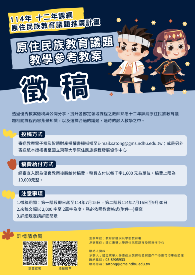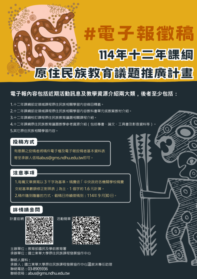 114年十二年課綱原住民族教育議題推廣計畫 【原住民族教育議題教學參考教案徵稿】