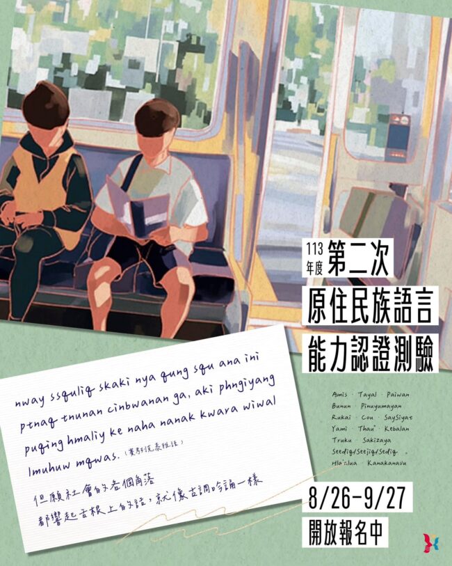 113 年度第 2 次原住民族語言能力認證測驗將於 12 月 7 日(星期六)登場,報名時間自 8/26 至 …