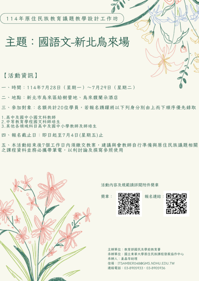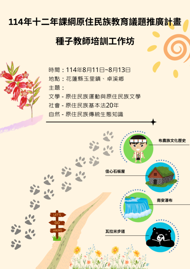 本項教學設計工作坊係教育部國民及學前教育署主辦之「十二年課綱原住民族教育議題推廣計畫」中的工作項目,為增進教師…