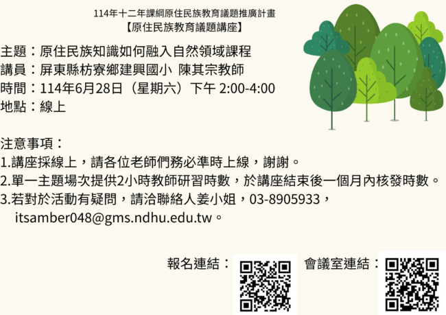 114年十二年課綱原住民族教育議題推廣計畫 【原住民族教育議題講座】 主題:山海閱…