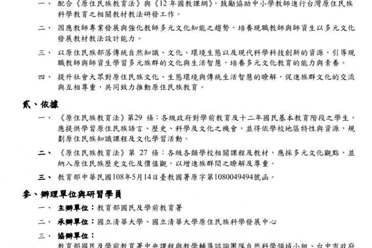 [活動協助轉發]🔈🔈🔈 108 學年度「12 年國教原住民族文化科學模組製作」研習班,這次辦在台中噢!! 研習&hell…